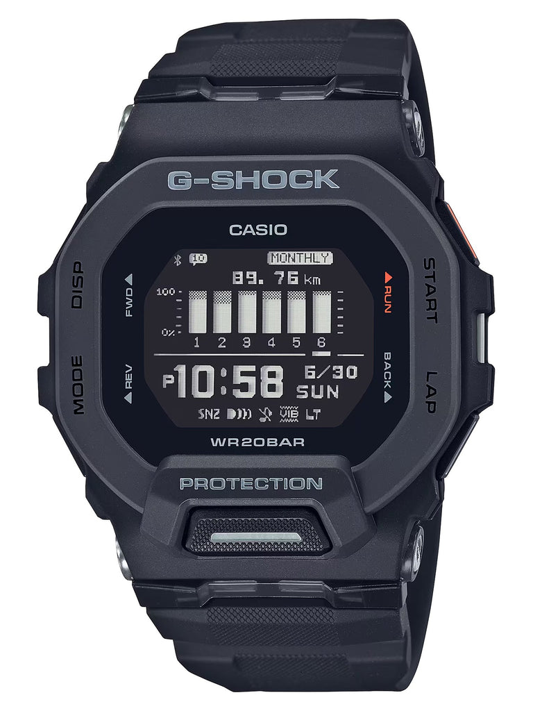 Introducing the sporty GBD200-1  Take your training to the next level with this burst of bold color. As much function as style, this G-SHOCK MOVE watch delivers all you need for the ultimate workout. Access your smartphone GPS for precision accelerometer measurement when tracking running distance, speed, pace, and calories burned.