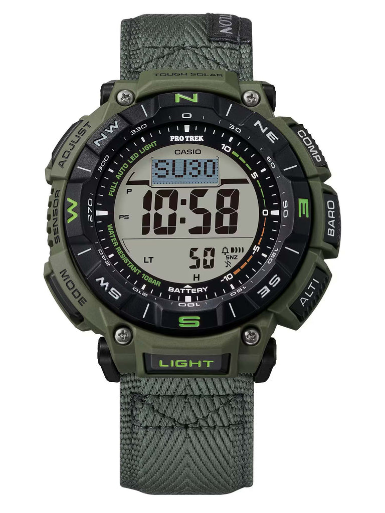Introducing the PRG-340B, a solar-powered PRO TREK with key components made of bio-based resin, a material expected to help reduce environmental impact. Packed with advanced features and total practicality, this PRO TREK is ready for every outdoor setting.
