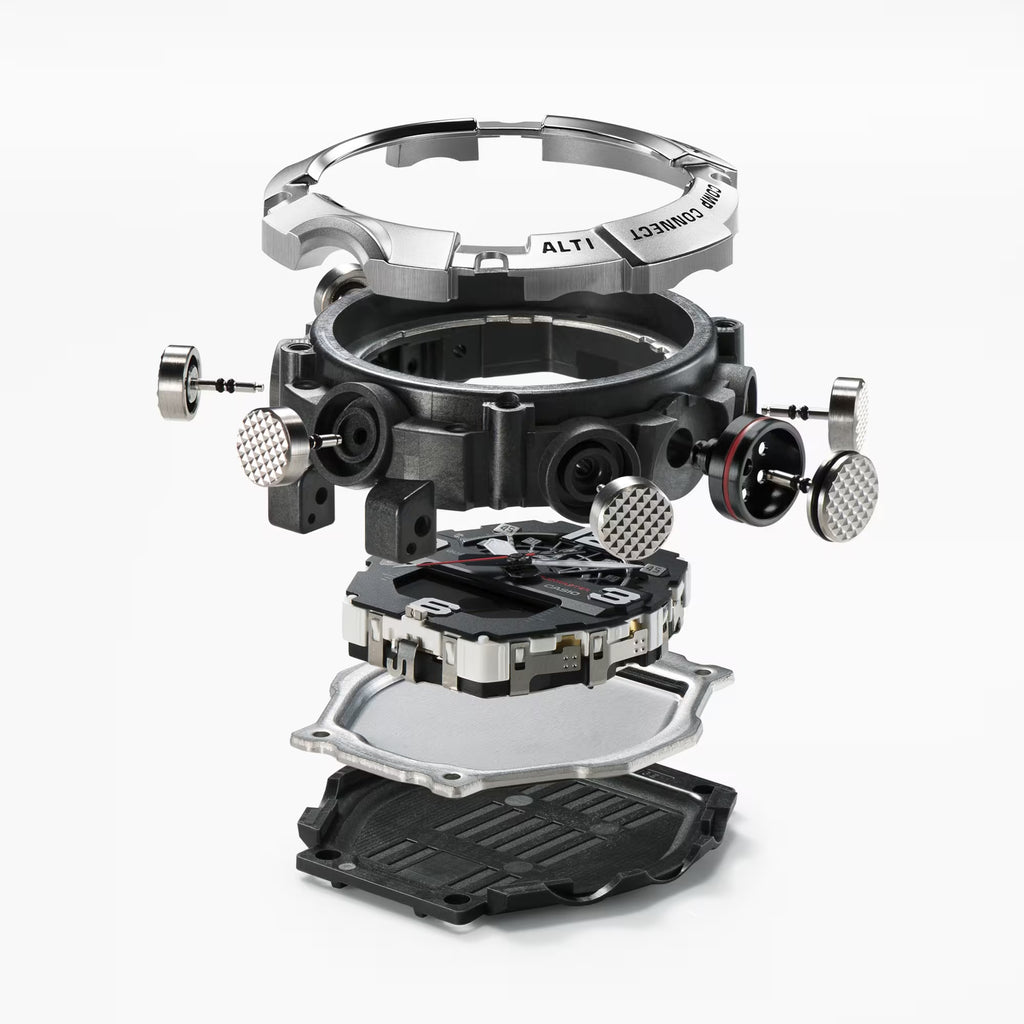 These MUDMASTER employ high rigidity carbon for the carbon fiber-reinforced case to keep damage and warping at bay and ensure a tight seal and excellent shock resistance. Featuring a filter to protect against mud, a stainless-steel panel back, and a back cover made of shock-resistant fine resin embedded with glass fibers, these timepieces provide a high level of resistance to dust and mud. Key components for the case and band are made with bio-based resin. Produced using renewable organic resources, this material is expected to help reduce environmental impact.